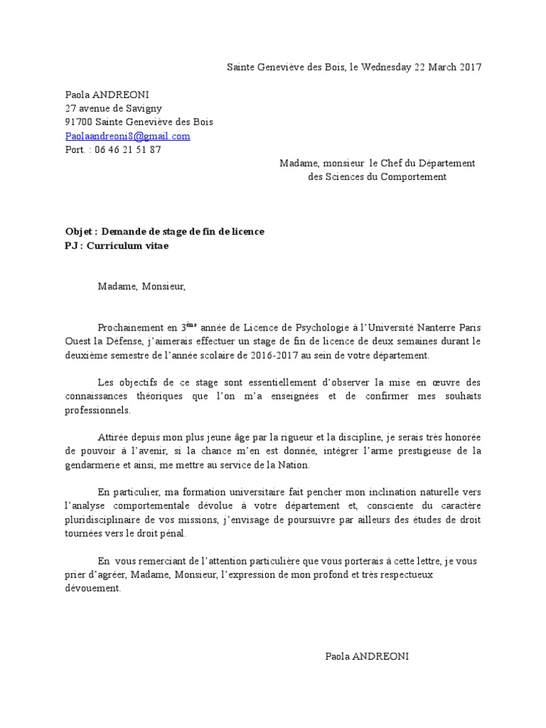 Lettre De Motivation Licence Exemple Gratuit from d1n7iqsz6ob2ad.cloudfront.net Lettre de motivation fac psycho. Rédiger une lettre de motivation pour la fac ne signifie pas que vous allez devoir écrire un roman de trois pages. Candidature pour intégrer une licence de psychologie. Related posts to lettre de motivation pour fac de psychologie. Nom de la faculté a l'attention de nom du responsable adresse de la fac ou de l'université code postal ville. Carta de agradecimento por oferta. Un psychologue se doit de s'intéresser aux actions et réactions humaines sous toutes ses formes. Remerciement, lettre de motivation en anglais, lettre de procuration, lettre de demande d emploi related posts to lettre de motivation fac psy.